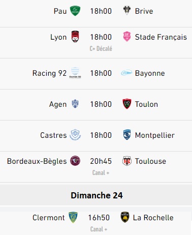 le programme complet des matchs de Top 14 du week-end:
