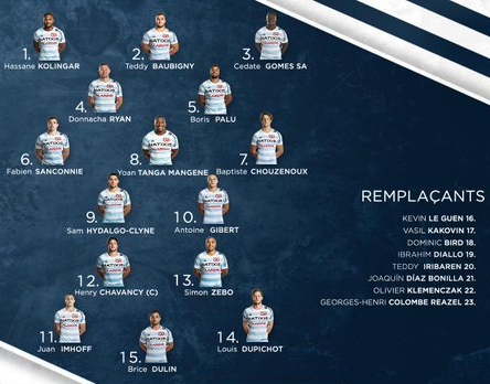 Pour relever le défi de Mayol, Laurent Travers a surpris son monde en alignant Simon Zebo au centre de l’attaque. Étonnant quand on sait que Dorian Laborde, Baptiste Lafond ou Leonard Paris sont disponibles. On notera également la première titularisation de Sam Hidalgo-Clyne préféré à Teddy Iribaren mais également celle de Yoann Tanga-Mangene au poste de troisième ligne centre. Enfin, Teddy Thomas sort du groupe, probablement préservé.