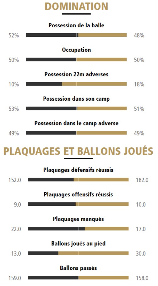 Côté trois-quarts, difficile de ne pas souligner la prestation d’Imhoff, toujours très disponible et qui a encore débloqué le match et s’est offert un doublé. Iribaren a réalisé un quasi sans-faute au pied et a globalement bien géré l’alternance dans le jeu des Racingmen On notera également la première intéressante de Léonard Paris cette saison qui demande à être revu.