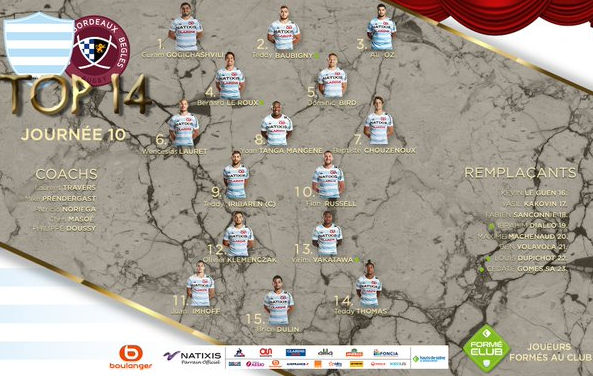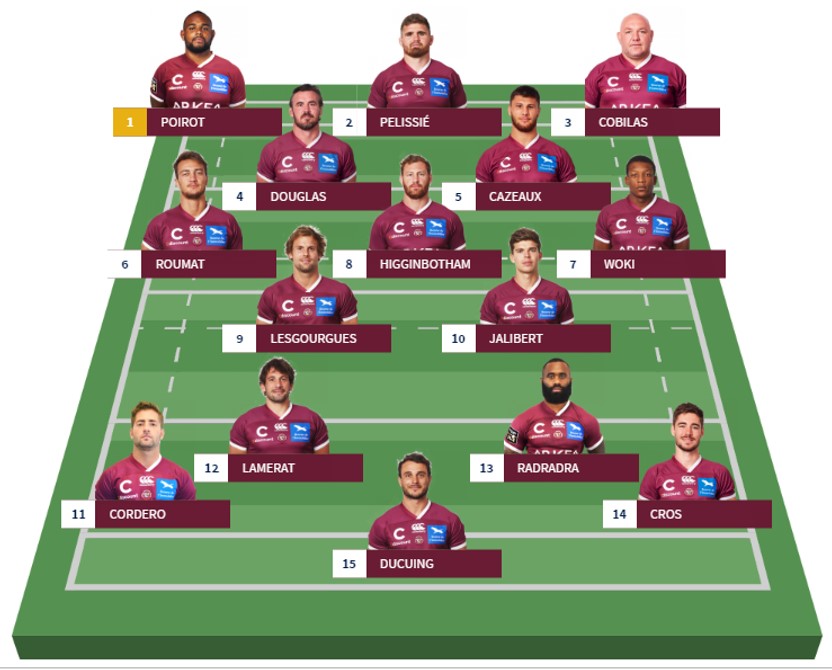 Une chose est sûre, Christophe Urios ne compte pas faire le voyage à vide. S’il faudra avoir un oeil attentif sur le duel à venir Vakatawa-Radradra, le XV de départ concoté par l’entraîneur Bordelais est un savant mélange entre expérience (Cobilas, Pelissié, Lamerat…) et jeunes joueurs à fort potentiel (Jalibert, Roumat, Cros). A noter les absences de l’ancien Parisien Flanquart et de l’inoxydable Blair Connor.